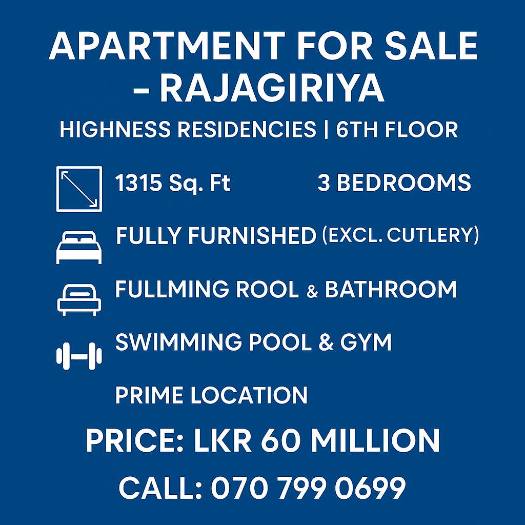 🏢 3-Bedroom Apartment for Sale – Highness Residencies, Rajagiriya