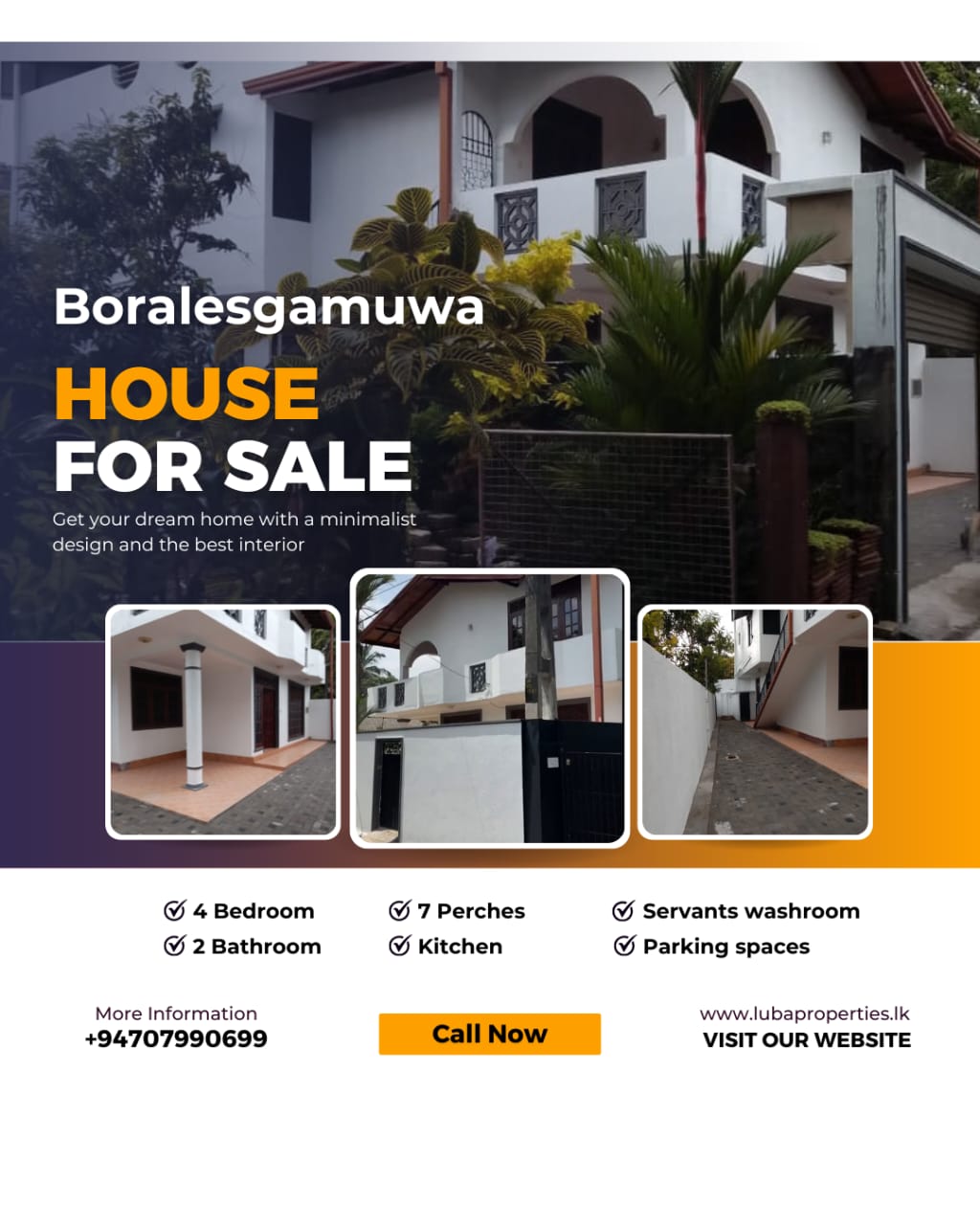 Own this stunning three-story home in the heart of Boralesgamuwa! Situated on 7 perches, this elegant house offers: