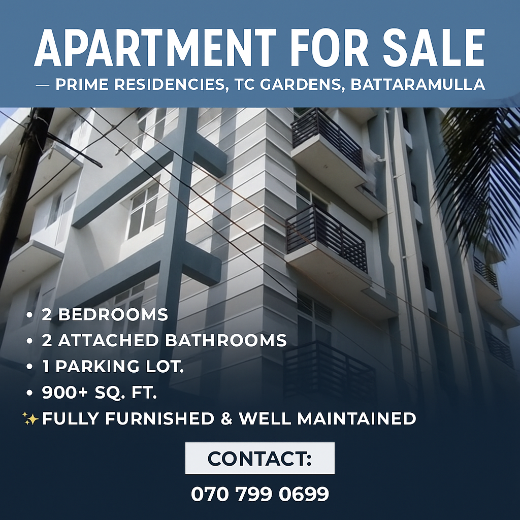 🏢 Apartment for Sale – Prime Residencies, TC Gardens, Battaramulla