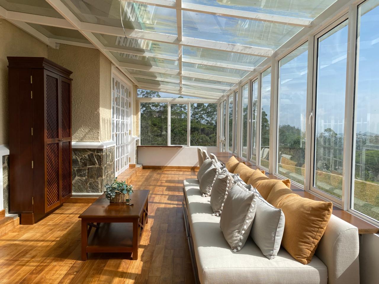 Fully furnished bungalow with sitting & dining areas, indoor and outdoor pantries, domestic quarters, outdoor conservatory β€” nestled among lush tea plantations, with a stream and running water right in front.